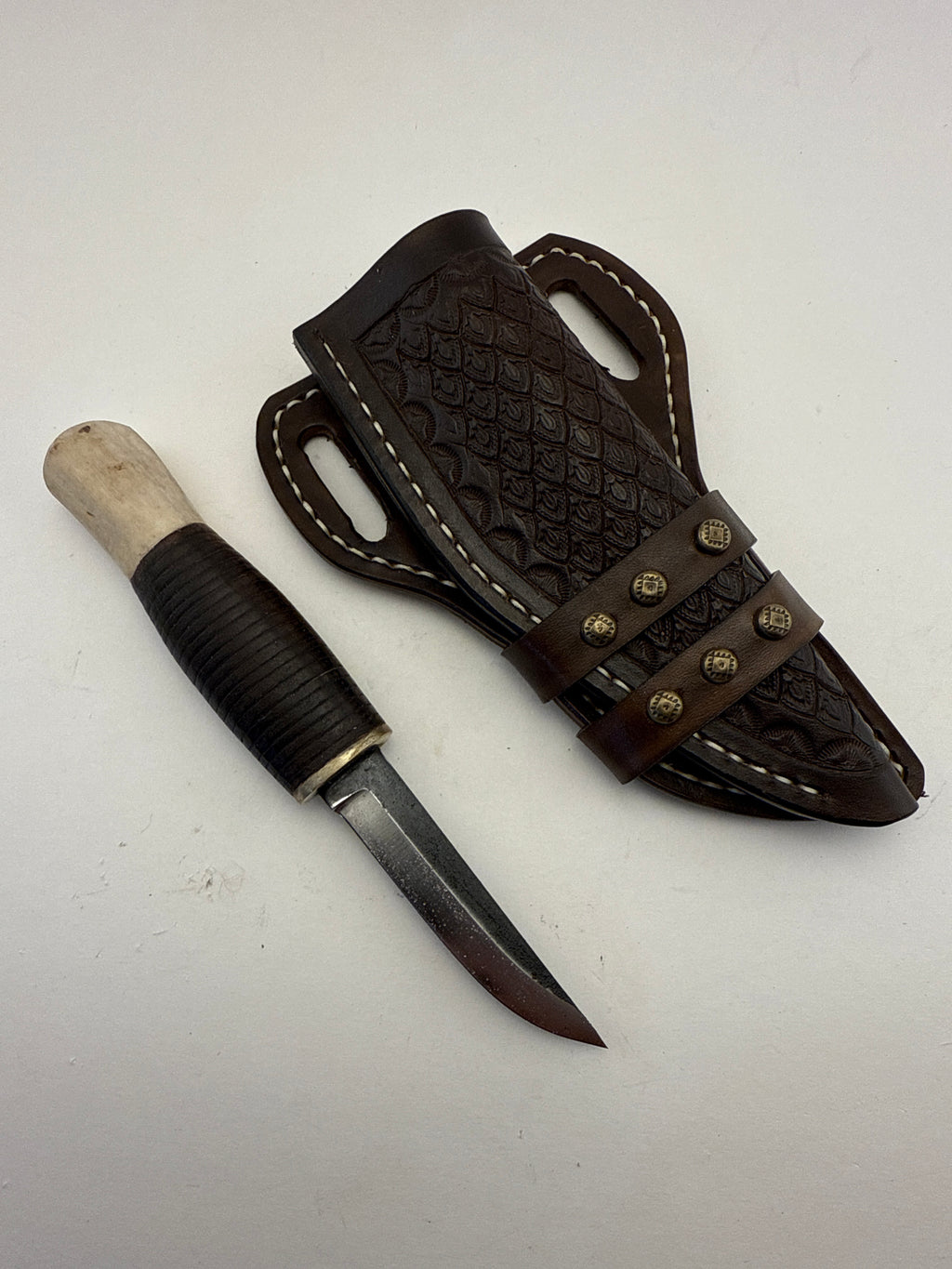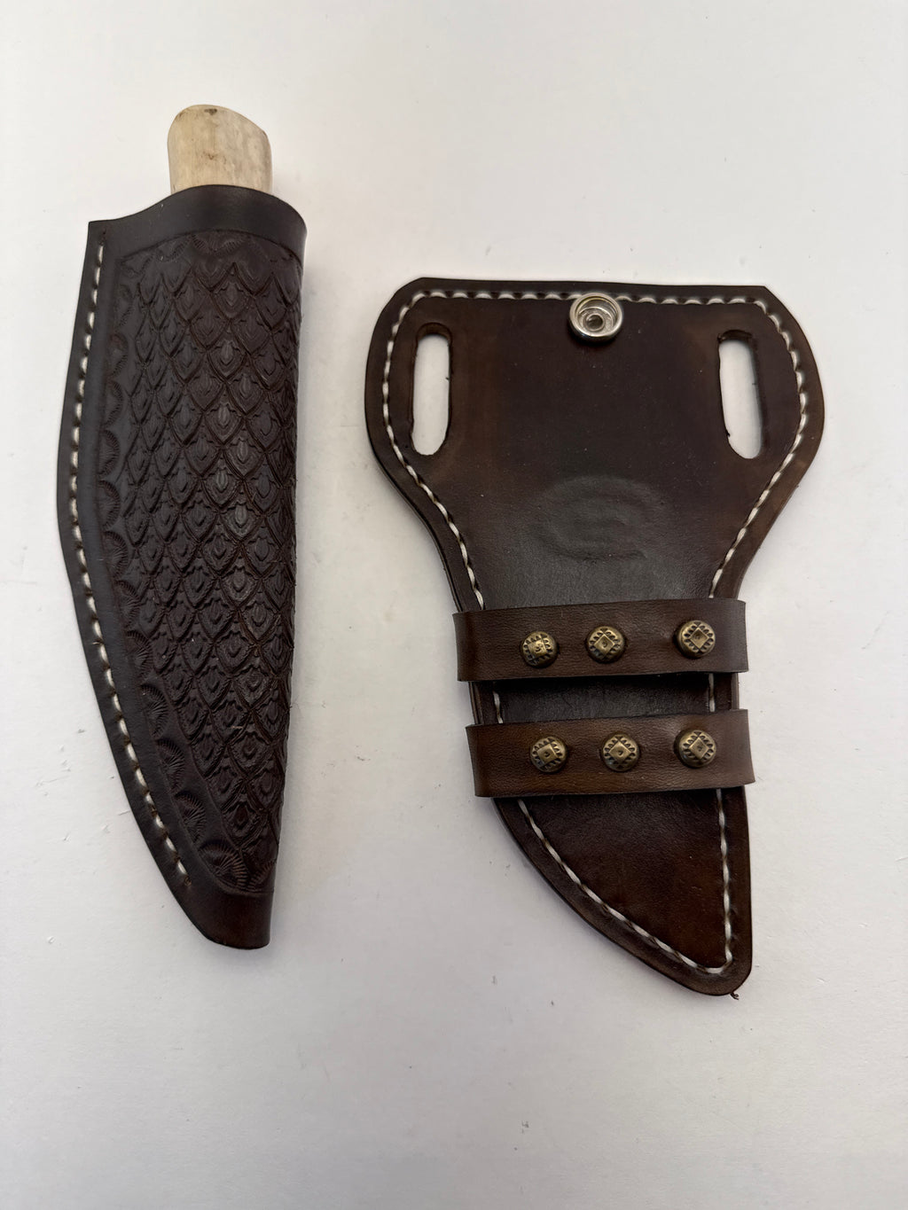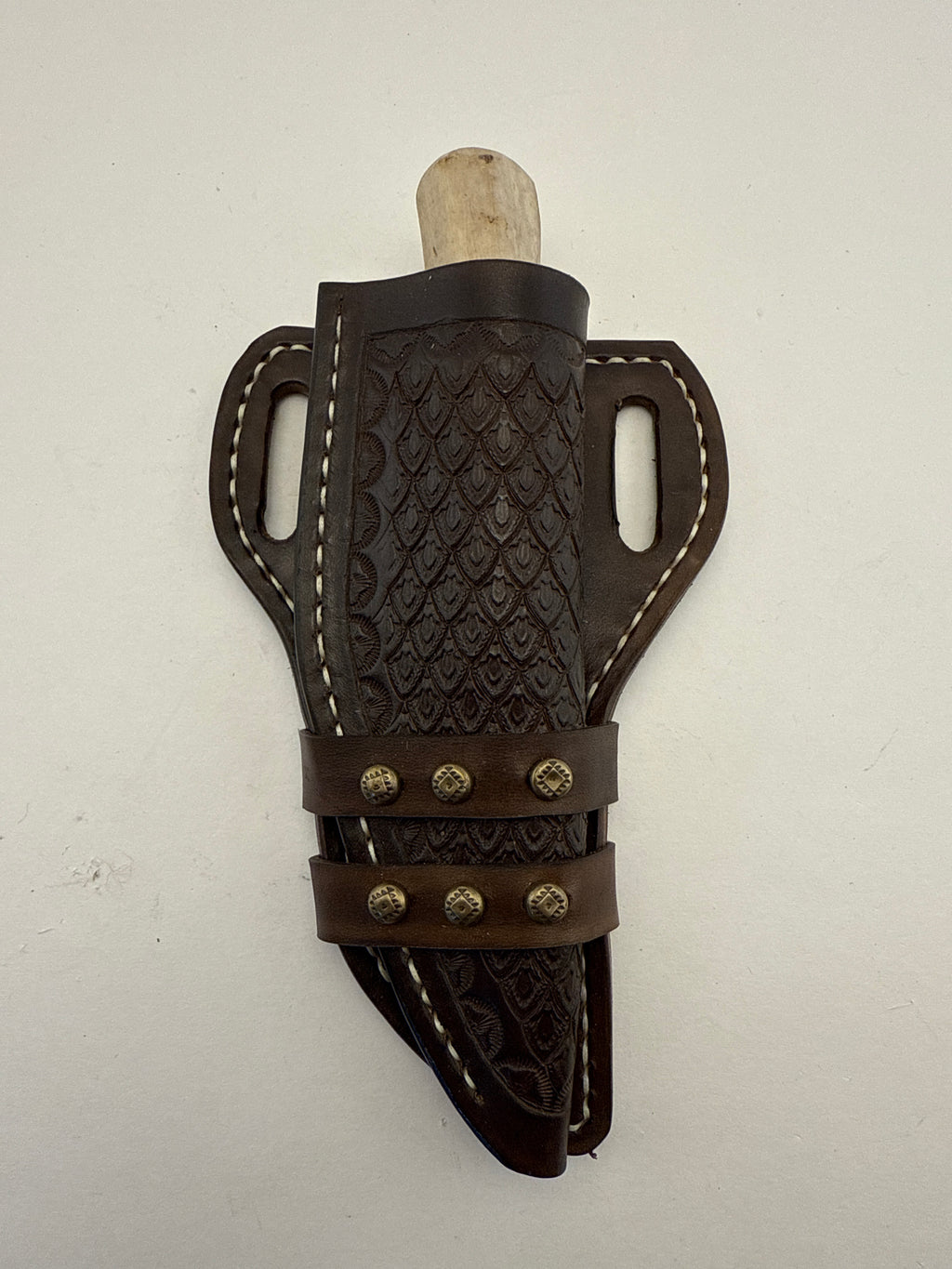 Pecks Woods Leather - Leather Spacer handle with antler piece #129