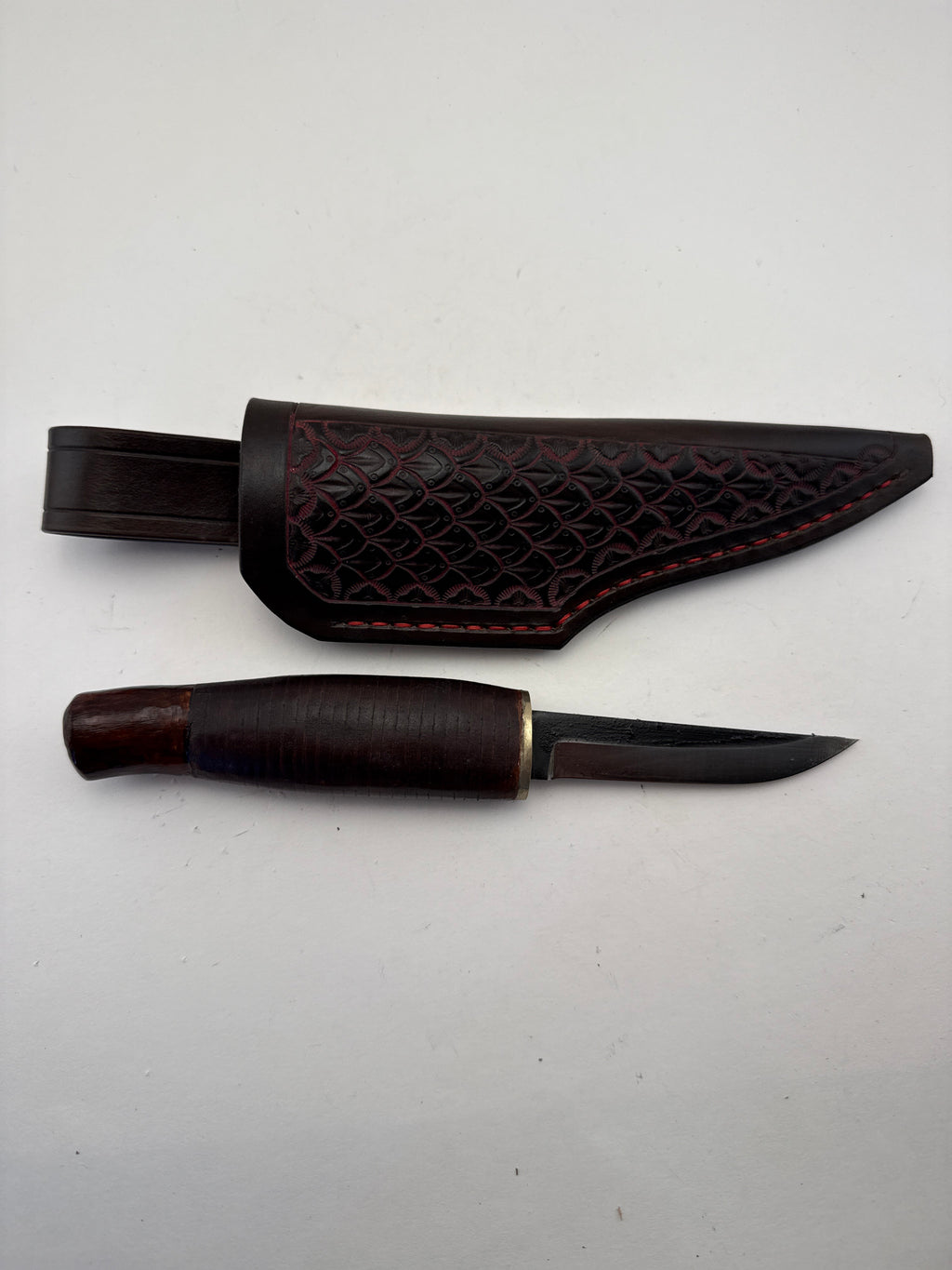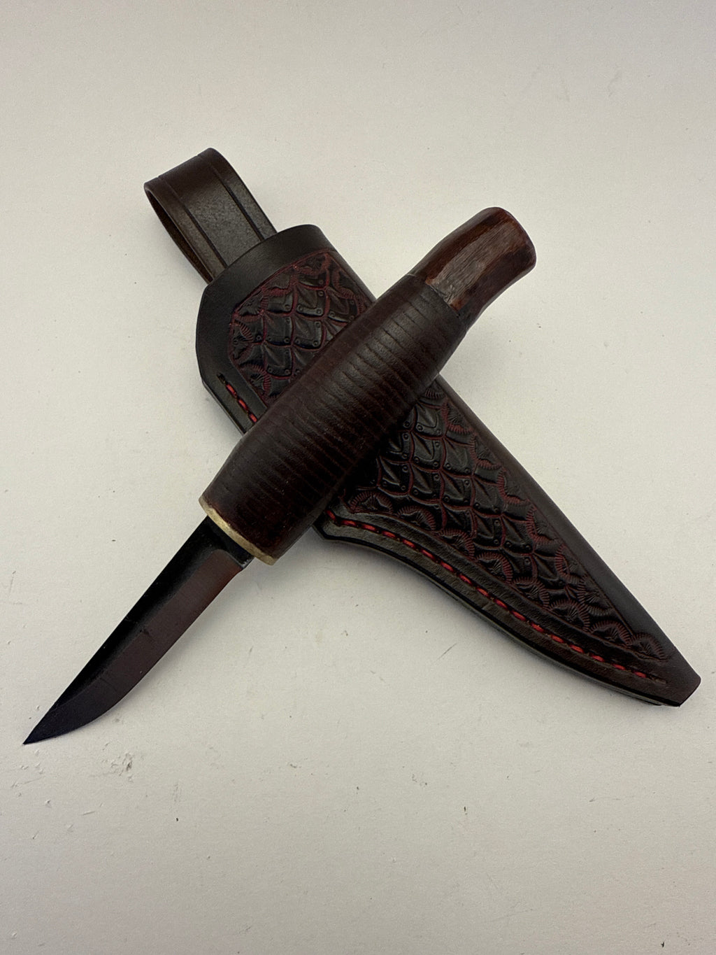Pecks Woods Leather - Leather Spacer handle with dyed antler piece #134