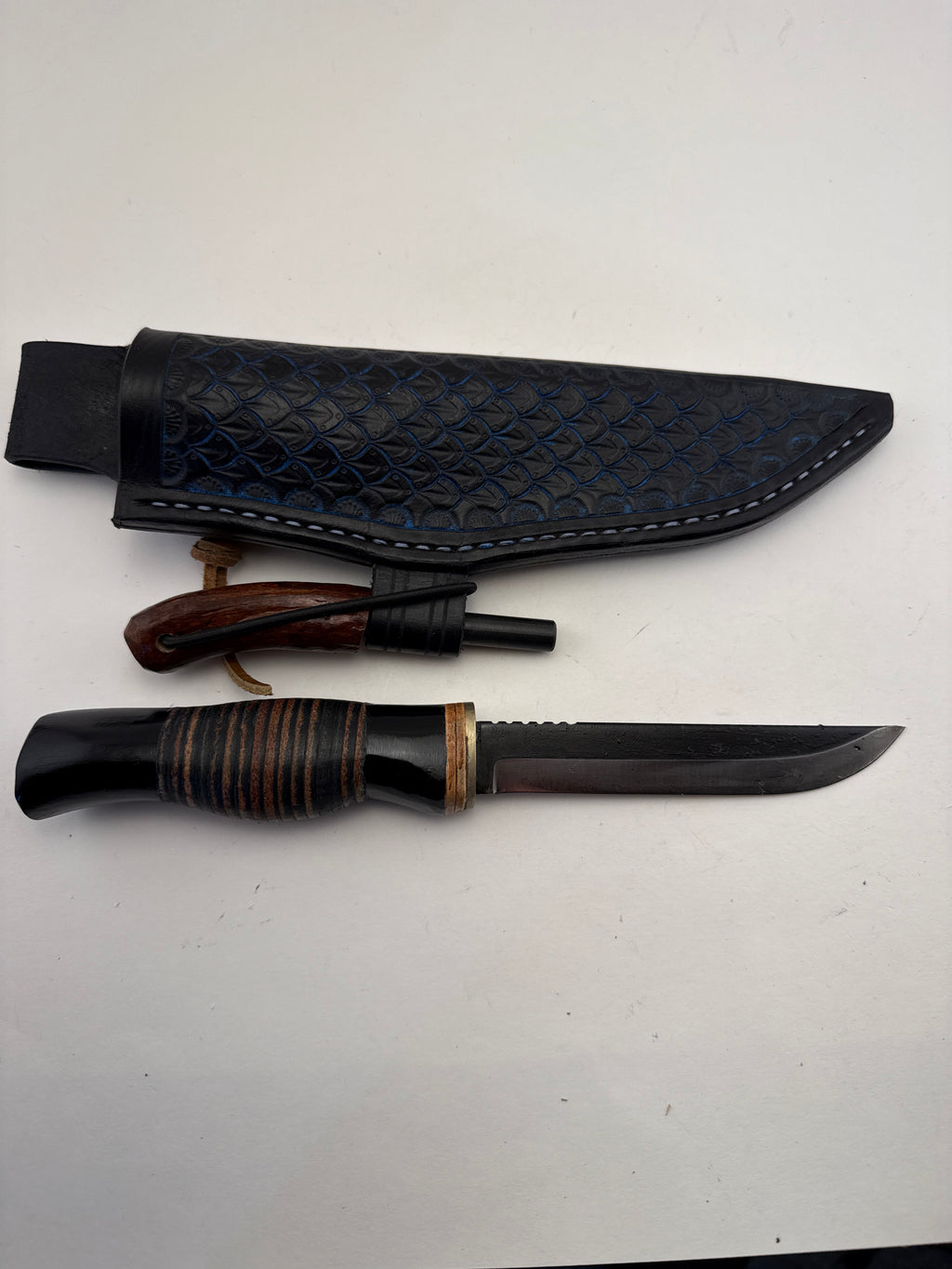 Pecks Woods Leather - Leather Spacer handle with dyed antler piece #135